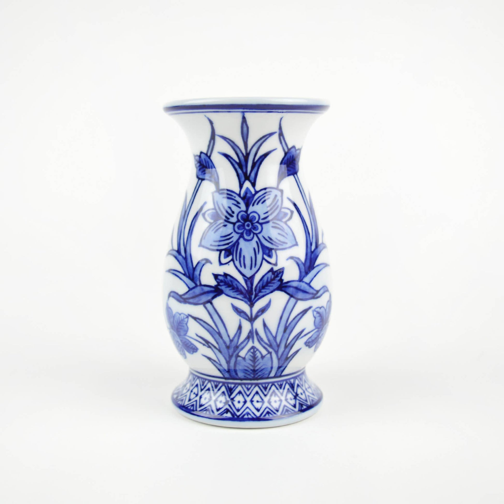 Our Blue Chinoiserie Bud Vase is the perfect piece of chic decor to add to any room! Get your Blue Chinoiserie Bud Vase today! 6" x 3.25" x 3.25" Porcelain Hand Wash Recommended Designed in the USA; Imported