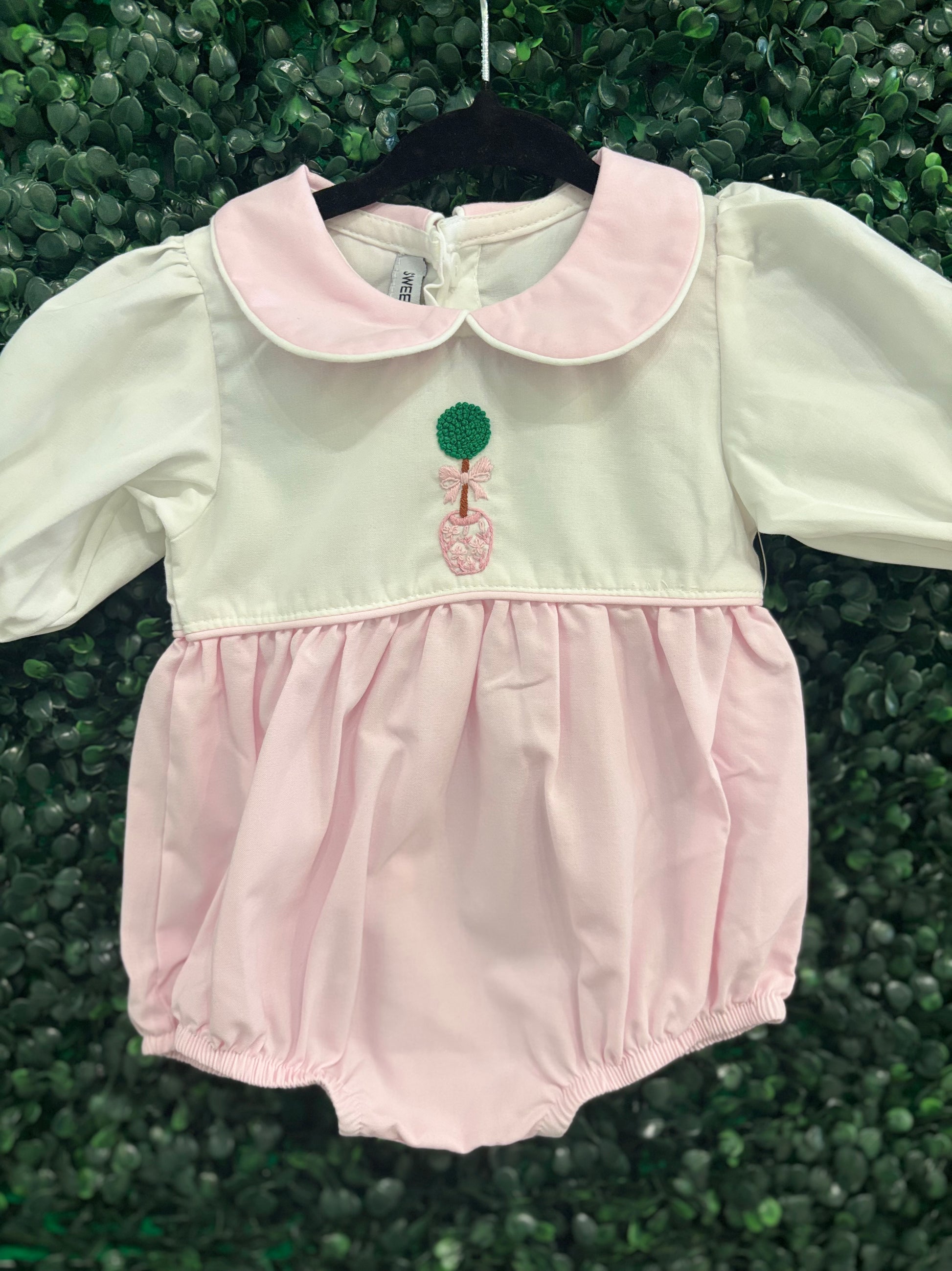 Dress your favorite little girl in this adorable embroidered topiary bubble!
